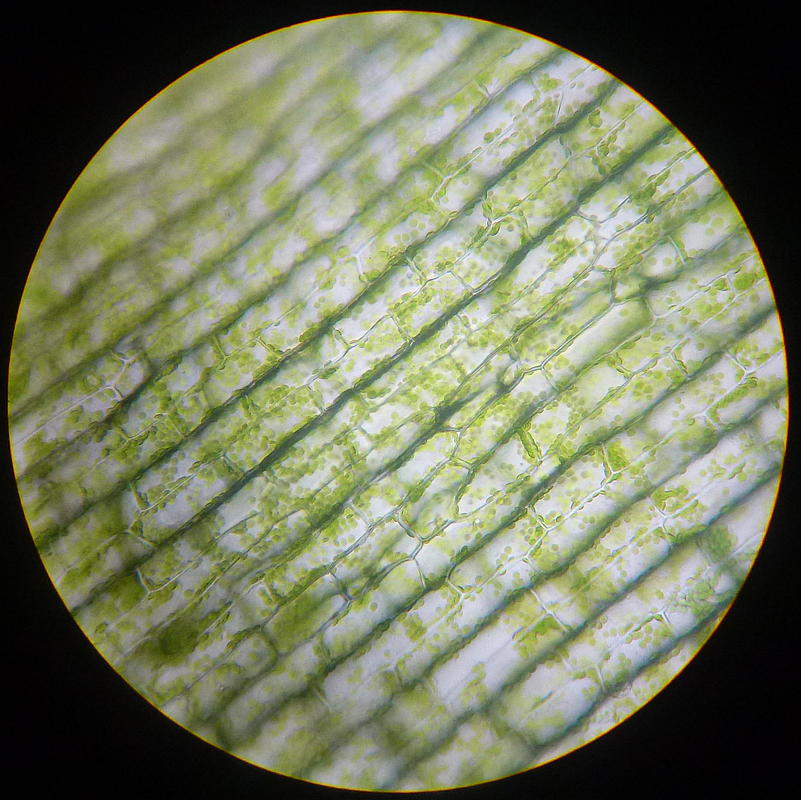 Die für Pflanzen typischen Chloroplasten findet man leicht in den Blättern der Wasserpest (Elodea canadensis oder Elodea densa).